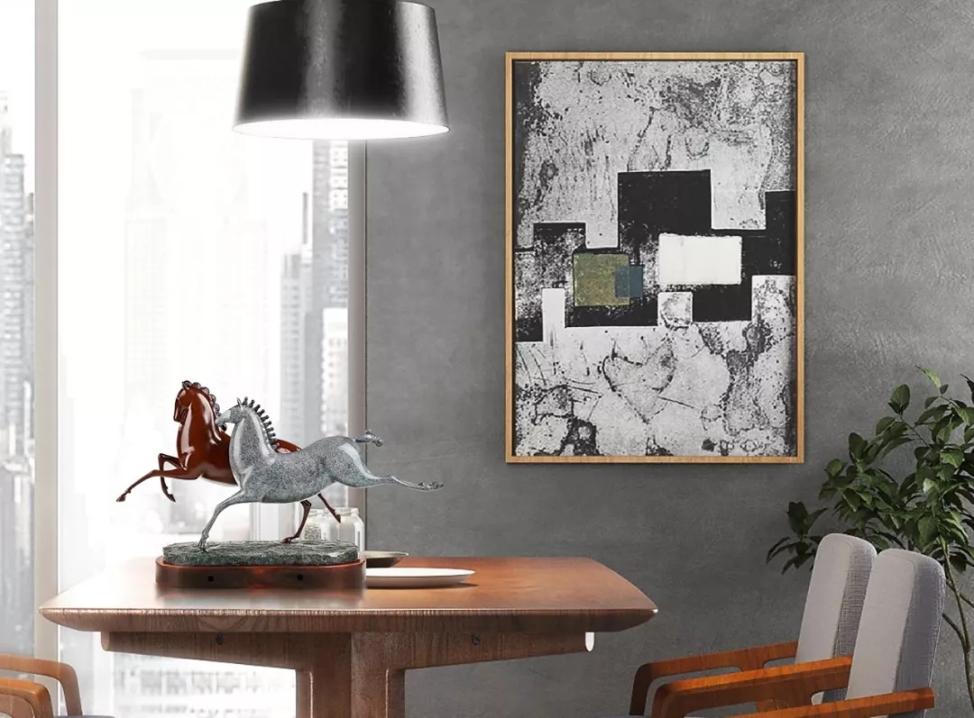 Those who love basketball don't miss this exquisite bronze sculpture! The work captures the moment of dunking and shows a fierce confrontation between the two players. The figure's clothes and muscles are sculpted very carefully, and even the blood vessels as small as the arms are portrayed, full of power; the high temperature coloring makes the sculptures come alive.