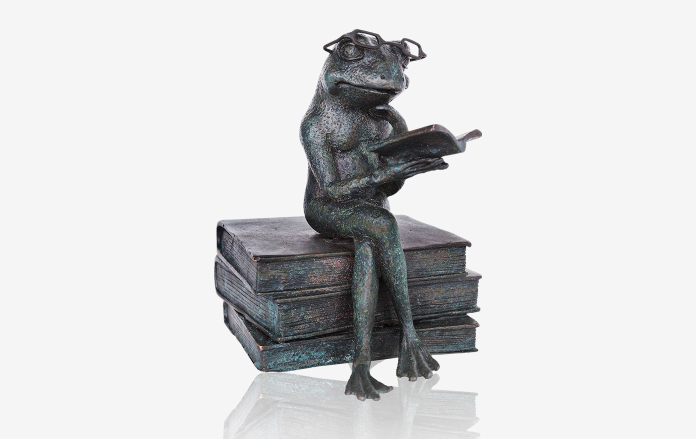 “井底之蛙”一般指的是目光短浅、不爱学习、不爱进步,而当“井底之蛙”都开始捧起书本,热衷学习之后,岂能不让人尊敬。由鸿鑫雕塑所创作的《“怒”蛙可式》,虽不见“怒蛙”,却也让人对青蛙这种好学的精神肃然起敬。以“青蛙”架着眼镜读书为题材创作的“书挡”,场景生动有趣,更能让枯燥的书海平添盎然乐趣。