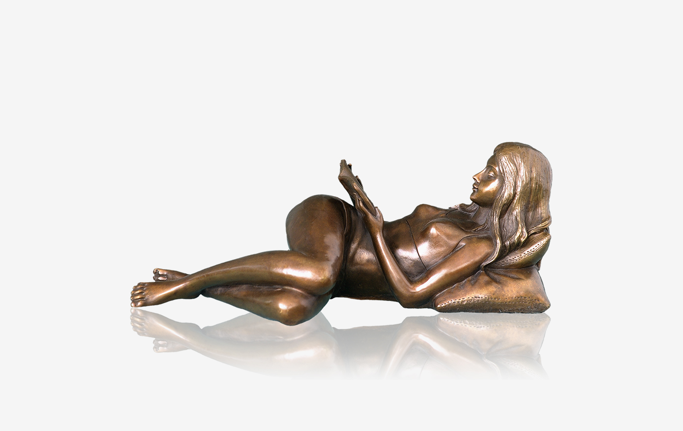 睡前读书无疑是陶冶情操的行动,鸿鑫雕塑创作的《静夜品读》,以一个女性的形象,以优雅的姿势在认真的品读书中的精彩,将整件作品的美感刻画的恰到好处。不仅如此,作品以女子的头部、枕头连成一线,作为书挡之用,更令人感叹作者的巧思妙想。
