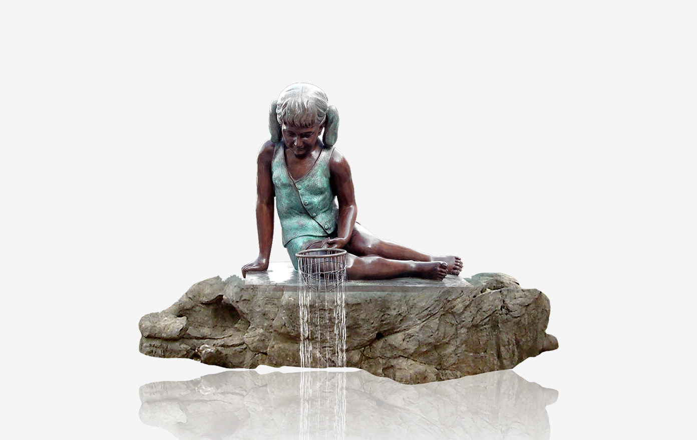 喷泉雕塑能将水和雕塑融合起来,给人带来非常强悍的视野冲击力,与喷泉的壮观景色相得益彰,使环境变得更加的引人入胜,而这件喷泉雕塑作品就达到了这样的效果。这件作品的设计者极具童心和观察力,仔细地捕捉了日常生活中的值得品味的场景,将之凝聚在雕塑作品之中。由此,我们可以看到,当喷泉开启后,水流顺着网兜留下,淅淅沥沥地滴落,形成美丽的水流场景。而女孩的人物雕刻(头发、神态、四肢、服饰等)也是非常的自然、生动。